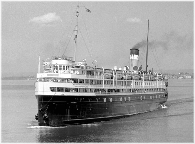 A comparison of the new Hurtigruten ship’s profile with the photo of Canada Steamship Lines’ Noronic, which traded from 1914 to 1949, shows some of the similarities – covered bow observation area, rounded wheelhouse and engines and funnel aft. Like the new Hurtigruten ships, the Noronic could carry up to 600 passengers but on a gross tonnage of only 6,095 and a length of 360 feet.