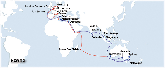 In April 2016, it was announced that six new ships, five from CMA CGM, the 10-passenger CMA CGM Bellini and her sister ships CMA CGM Chopin, Mozart, Puccini and Rossini and one from NSB, the 7-passenger MSC Monterey, would join the Europe-Australia route from London Gateway via Suez to Australian ports.