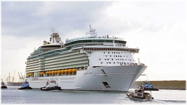Royal Caribbean International's Mariner of the Seas departs Port Canaveral, escorted by tugboats from Petcham Tugs and Seabulk Towing (Photo: Canaveral Port Authority)Royal Caribbean International cruise ships Harmony of the Seas and Mariner of the Seas received a “royal” sendoff on Monday as the giant vessels sailed from their new homeport of Port Canaveral.